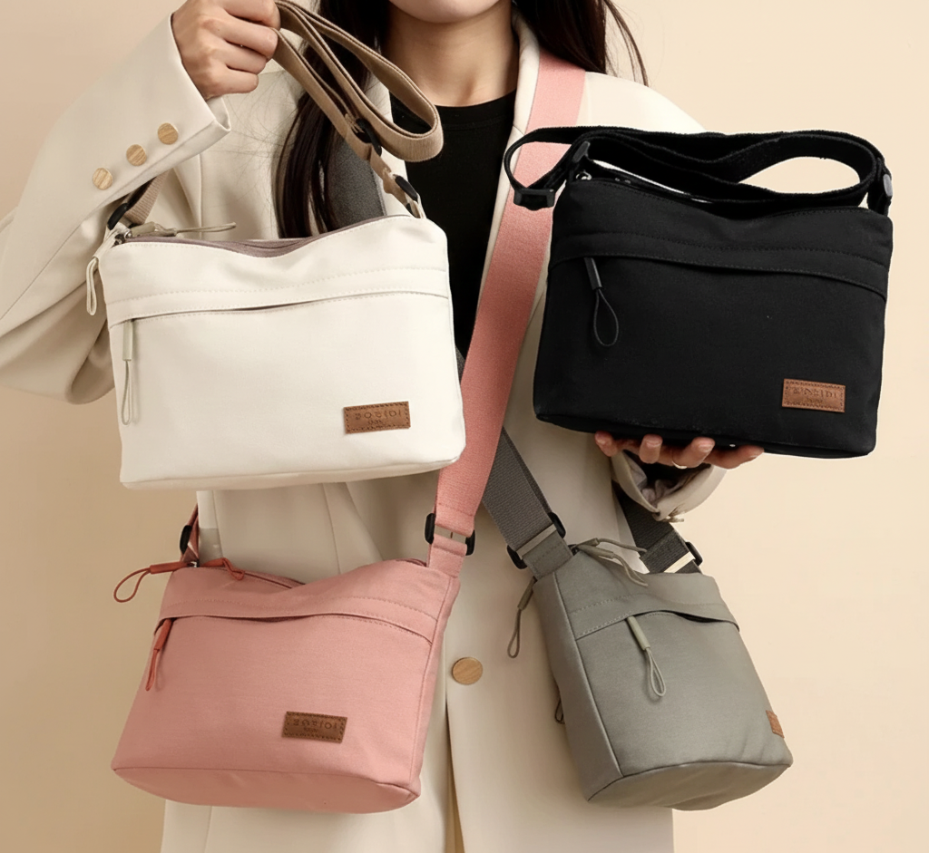 The durable, soft-touch canvas material provides a lightweight yet robust structure perfect for everyday errands and travel. Featuring multiple zipper pouches for seamless organization and a wide comfortable strap that minimizes shoulder strain, this is the ultimate practical accessory.