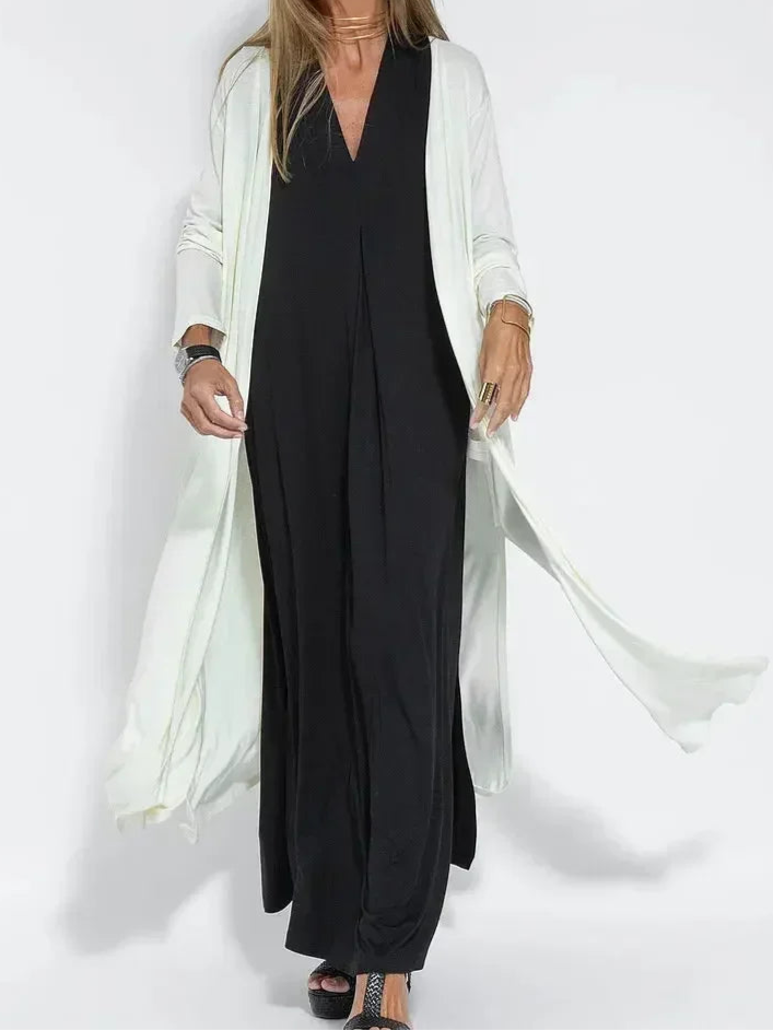 Elevate your wardrobe with this long sleeve, ankle-length cardigan crafted from lightweight fabric for effortless layering. Its extended silhouette offers graceful coverage, while the breathable material ensures comfort throughout the day. Perfect for adding a refined touch to both casual and formal ensembles, this cardigan combines timeless elegance with practical wearability.