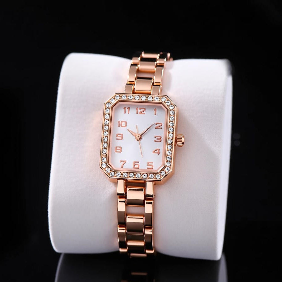 A radiant diamond-encrusted bezel frames the pristine dial, paired with precise Quartz movement for timeless accuracy. Crafted with durable stainless steel, this watch embodies quiet luxury and lasting sophistication.